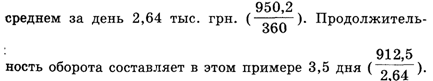 Скорость обращения технологического топлива вычисляется, исходя из средних фактических остатков по балансу и среднедневного его расходования на производство, который определяется делением суммы расходов на количество дней в проверяемом периоде. Допустим, что среднедневный остаток топлива равен 912,5 тыс. грн., расходование на производство по отчету за тот же период — 950,2 тыс. грн., или в