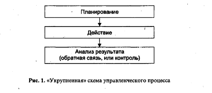 Контроль как функцияуправления. Это самая простая концепция контроля, «обратная связь» любого процесса управления, посредством которого управляющая система получает необходимую информацию о действительном состоянии управляемого объекта и степени реализации управленческих решений. Схематично любой управленческий процесс можно представить на рис. I'.