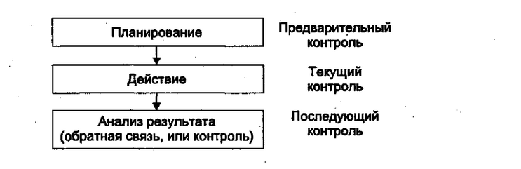 Более сложная концепция контроля - это контроль, осуществляемый на каждой стадииуправленческого процесса, ее основоположник - Фабио Беста (1845-1923). Контроль делится по времени его проведения на предварительный, текущий и последующий [50, с. 7-11]. Суть концепции представлена на рис. 2.