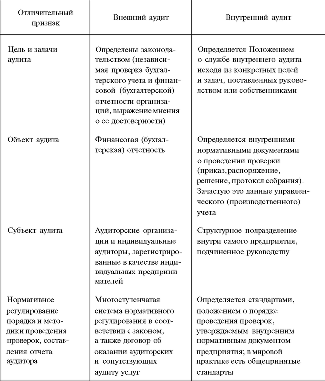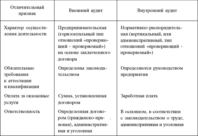 Основные различия между внешним и внутренним аудитом приведены в табл. 3.