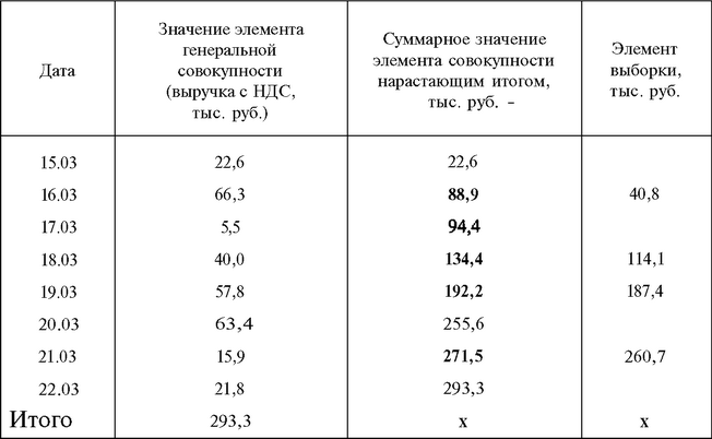 Результаты отбора элементов методом построения стоимостной выборки по интервалам
