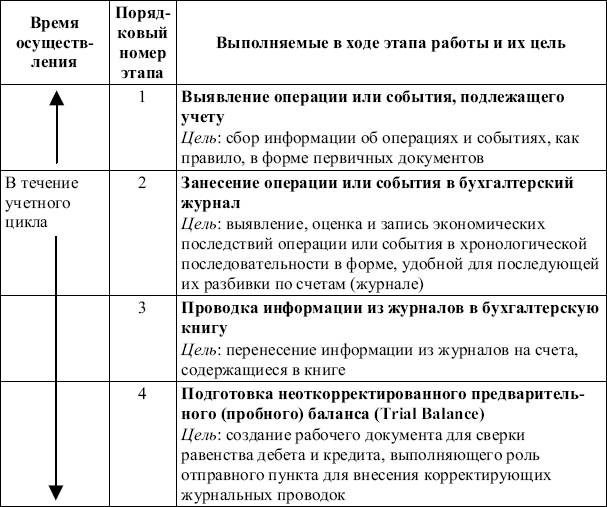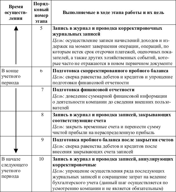 Технология учета состоит из 10 этапов (шагов), некоторые из них могут быть совмещены в зависимости от используемых в той или иной компании средств компьютеризации учета (табл. 2.15).