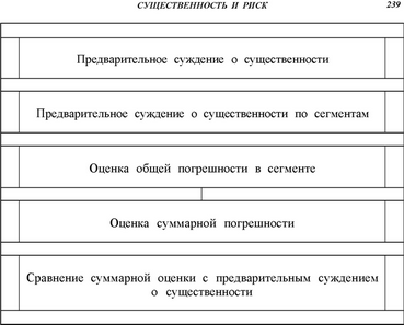 Два первых шага применения критерия существенности входят в сразу планирования, тогда как три последних (шаги 3, 4 и 5 на схеме 8.1) являются результатом проведения аудиторских тестов. Последние три шага рассматриваются подробно в последующих главах; в настоящем разделе показана лишь их взаимосвязь с двумя первыми.