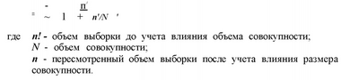 Таблицы, используемые большинством аудиторов, включая и приведенные здесь, основаны на бесконечных объемах совокупностей. Можно учесть объем швокуттости при определении начального размера выборки путем введения поправки, называемой фактор конечной корректировки. Этот фактор позволяет значительно пересмотреть выборки, когда только более 10% совокупности включено в выборку. Вычисляется он следующим образом: