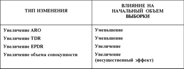 Комбинация двух факторов оказывает самое большое влияние на объем выборки: TDR минус EPDR. Небольшой пример, использующий ARO на уровне 10%, показывает это влияние. Используем табл. 12.7, если TDR - 7%, a EPDR - 4,5%; разница будет 2,5%, а начальный объем выборки - 218. Если TDR - 9% и EPDR - 2%, то разность будет 7%, а начальный объем выборки - 42.
