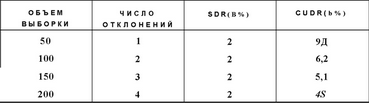 Увеличить объем выборки. Увеличение объема выборки приводит к уменьшению CUDR, если действительная норма отклонений выборки не повышается. Это можно продемонстрировать в табл. 12.9, сохраняя норму отклонений постоянной и наблюдая уменьшение CUDR по мере увеличения объема выборки. Табл. 12.10 показывает CUDR для четырех разных объемов выборки при постоянной норме отклонений выборки 2%.