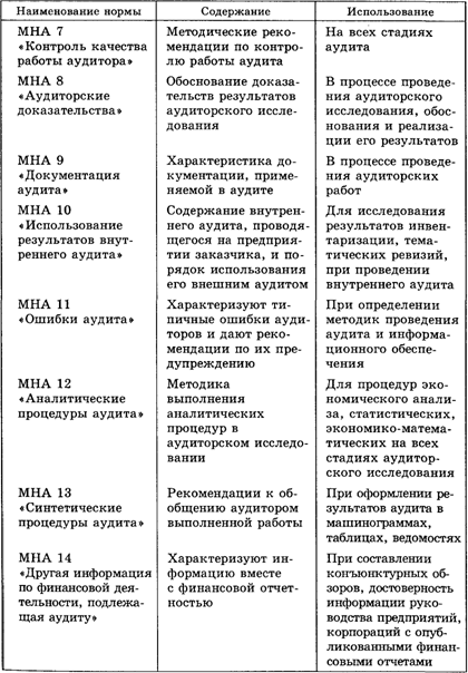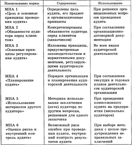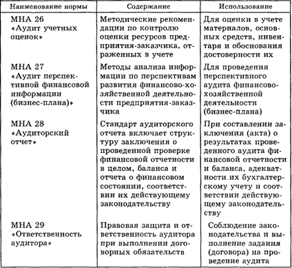 Таблица 4.2. Ориентировочный перечень международных норм аудита (МНА), их содержание и использование