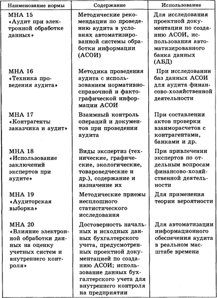 Аудит как форма интеллектуальной деятельности имеет определенные особенности организации и методики проведения. Международные ассоциации бухгалтеров и аудиторов обобщили опыт организации и методики учета и аудита в странах с разными формами собственности и хозяйствования в виде международных норм аудита (МНА), которые в определенной степени выполняют функции стандартов по учету и аудиту.