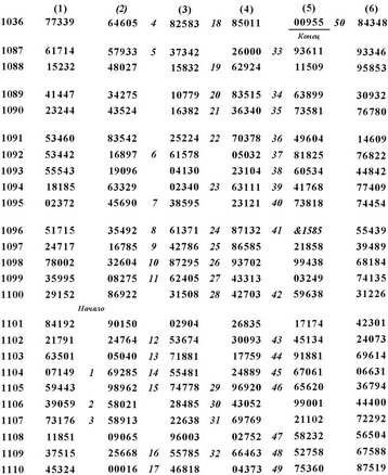 Совокупность = 3689-9453. Соответствие - первые четыре цифры в таблице. Маршрут - вниз до конца колонки, а затем с верха следующей. Объем выборки — 50, представленный поспедователънъиш числами от 1 до 50.