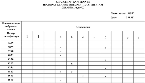 Рис. 123. Случайная выборка для проверки операций по реализации Хиллсбург Хардвеар Ко Случайная выборка для проверки операции по реализации