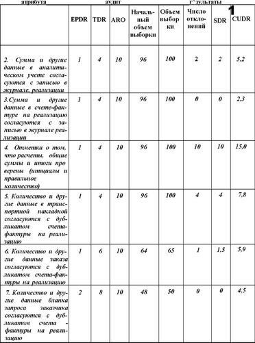 EPDR основана на результатах предыдущего года и слегка увеличена из-за изменений в составе персонала. Начальный объем выборки для каждого атрибута определен по табл. 12.7 по соображениям, приведенным выше. Эта информация распространена на все атрибуты на рис. 12.2. Для удобства выбора и оценки аудитор решил составить выборку объемом 75 для атрибута 4, 100 для атрибутов 2-5, 65 для атрибутов 6-9 и 50 для двух оставшихся.