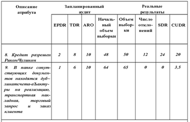 При завершении тестирования отклонения заносят в таблицу, чтобы определить их число в выборке для каждого атрибута. Это дает аудитору возможность рассчитать норму отклонений выборки и определить CUDR (расчетная верхняя норма отклонений - computed upper deviation rate) из таблиц. Такая информация обобщена на рис. 12.4 и 12.5.