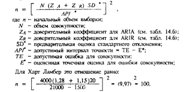 ОПРЕДЕЛИТЬ НАЧАЛЬНЫЙ 0Б1>ЕМ ВЫБОРКИ. Начальный объем выборки (ч) для Харт Ламбер может теперь быть вычислен по формуле