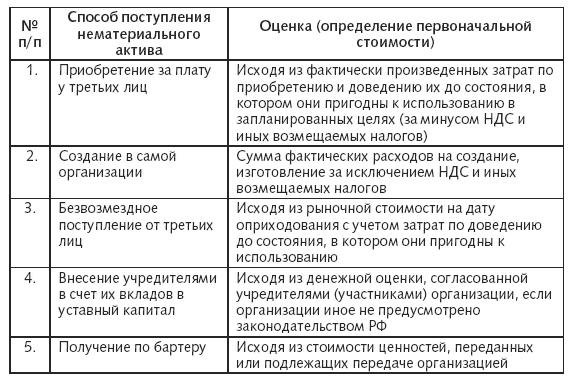 Первоначальная стоимость нематериальных активов в зависимости от способа их приобретения аналогичны установленным для объектов основных средств и материально-производственных запасов.