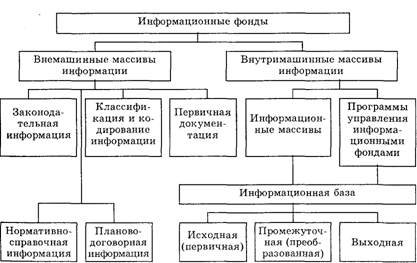 Структура информационного обеспечения для АСОИ управления и контроля (рис. 9.3) включает внемашинные и внутримашинные фонды.