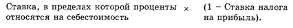 Проценты по кредиту, предоставленному поставщиками, также уменьшают базу налогообложения (прибыль к налогообложению). Однако при этом необходимо иметь в виду, что проценты, которые выплачиваются поставщику товарно-материальных ценностей, являются составляющей их фактической себестоимости заготовки (за исключением штрафов, пени и других санкций за нарушение условий хозяйственных договоров, которые относят к внереализационным расходам). Следовательно, их включают в себестоимость продукции только после того, как сырье (материальные ценности) будет использовано в производстве. Поэтому с учетом фактора налогообложения стоимость кредита поставщика определяют следующим образом: